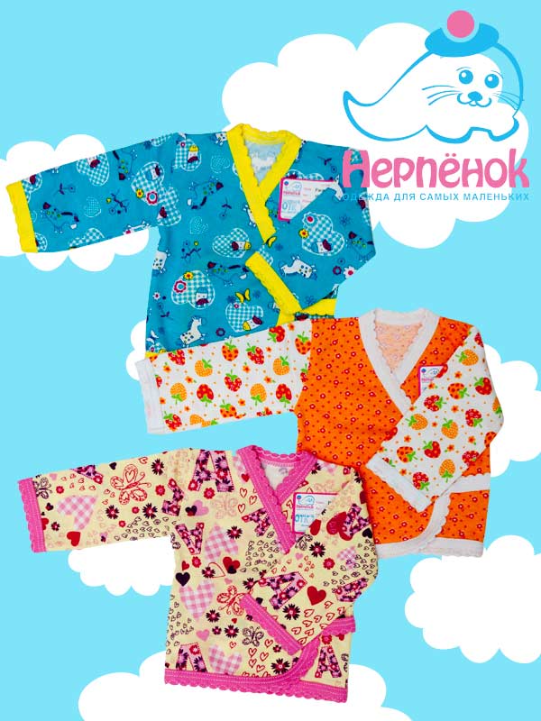 Распашонка с коротким длинным и запахом на кнопке