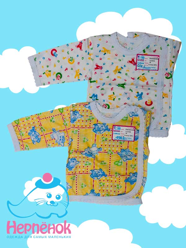 Распашонка-косоворотка на двух кнопках с длинным рукавом