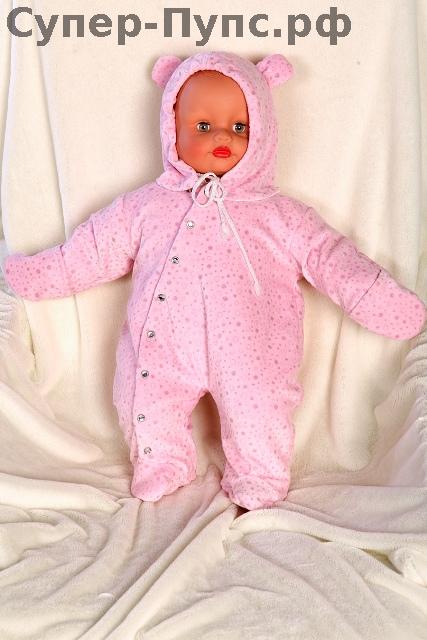 КОМБИНЕЗОН РОЗОВЫЙ ВЕЛЮР С ПЕРЛОМУТРОВЫМИ ПУГОВИЦАМИ