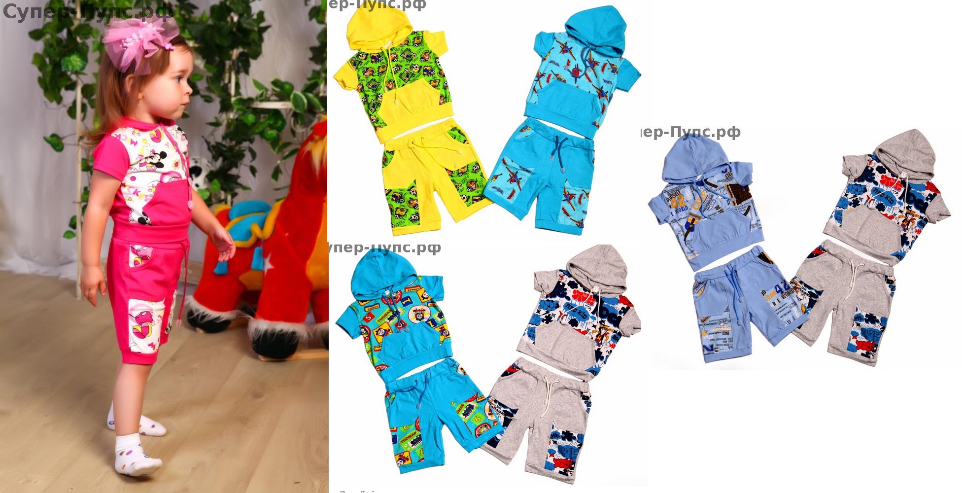 Шорты+футболка с принтом (капюшон)
